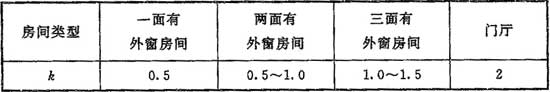 式中:Q——由門窗縫隙滲入室內(nèi)的冷空氣的耗熱量(W);