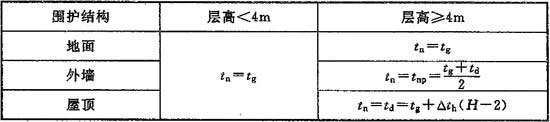 注:tn為冬季室內(nèi)計算溫度(℃),td為屋頂下的溫度(℃),tg為工作地點溫度(℃),tnp為室內(nèi)平均溫度(℃),△th為溫度梯度(℃/m),H為房間高度(m)。