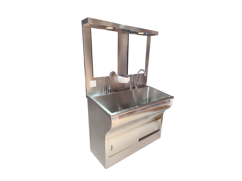 不銹鋼潔凈洗手池分為一人位、雙人位、三人位、四人位等,可根據(jù)客戶要求定制。無塵室不銹鋼洗手池、洗手槽采用SUS304不銹鋼制作,中間特殊靜音處理。槽身以人體工程學(xué)設(shè)計(jì)洗手時(shí)水花不易濺到身上。鵝頸型水龍頭,光控感應(yīng)式出水,可靠。配紅外線感應(yīng)給皂液裝置,醫(yī)用洗手池可選裝自帶40L美的電熱水器,自由設(shè)定出水溫度,一年四季可提供恒溫水,水龍頭感應(yīng)自動(dòng)出水,每個(gè)洗手位帶獨(dú)立鏡燈和鏡子,洗手槽采用特制的坡度設(shè)計(jì),可有效防止水濺到洗手池外,各水嘴獨(dú)立設(shè)置,不影響其它水嘴的使用。