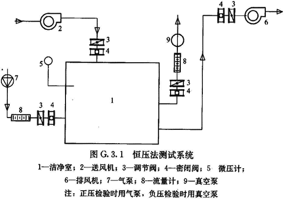 G.1.1 保持室內(nèi)為正壓或負(fù)壓均能滿足檢驗要求,但條件允許時,負(fù)壓潔凈室宜用正壓檢驗,正壓潔凈室宜用負(fù)壓檢驗。