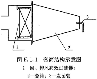 套筒(測定回、排風(fēng)高效過濾風(fēng)口時需要使用,罩住整個入口,使檢漏范圍包括邊框,長度應(yīng)使通過氣流時間為0.5s~1s,見圖F.1.1)。