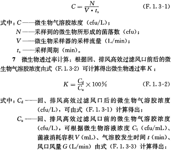 4 采樣:對于回、排風(fēng)高效過濾風(fēng)口,可在其后的出風(fēng)管道中采樣,離排風(fēng)高效過濾風(fēng)門的距離根據(jù)實際工程而定,原則上出風(fēng)后有所混合,能近則好,采樣點沿風(fēng)管寬度方向均勻布置3點。采樣周期、采樣次數(shù)按預(yù)先制定的評價方案執(zhí)行。采樣過程中,不能中斷微生物氣溶膠的發(fā)生,采樣結(jié)束后才能停止發(fā)生微生物氣溶膠,此后噴霧器中必須尚存不少于一半的微生物溶液,且需對剩余菌液活性進行涂布法驗證,以修正菌液濃度。