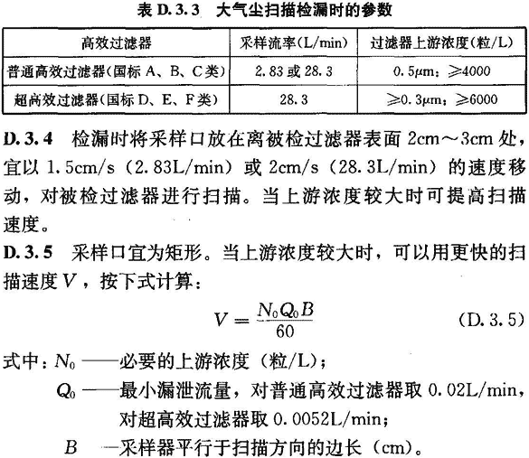 D.3.7 掃描檢漏時(shí)應(yīng)拆去高效過濾器外的孔板或裝飾層,掃描面積應(yīng)稍有搭接。