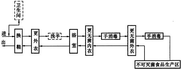 5.4.4 不可滅菌食品生產(chǎn)區(qū)人員凈化程序應(yīng)按圖5.4.4順序安排。