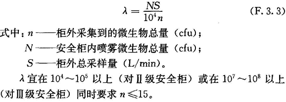 F.3.3 安全柜隔離系數(shù)λ按下式評(píng)價(jià):
