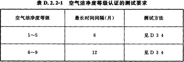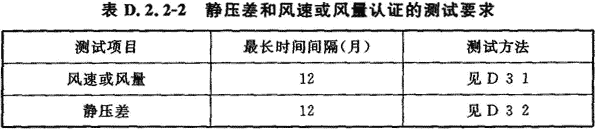 D.2.2 空氣潔凈度等級、靜壓差、風速或風量的認證測試的最長時間間隔應符合表D.2.2—1和表D.2.2—2的規(guī)定。