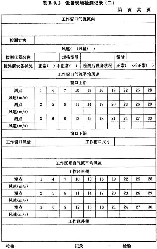 B.0.2 工作窗口氣流流向情況、風速(或風量)的檢測應按表B.0.2進行記錄。