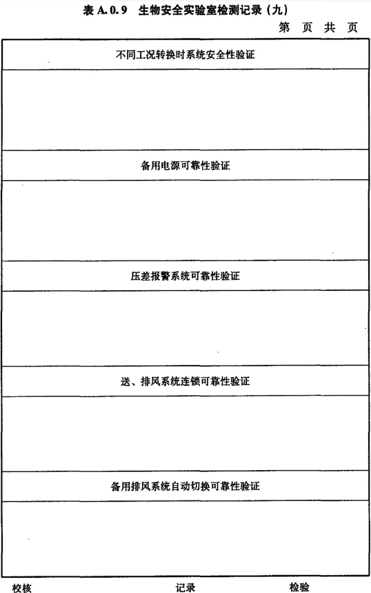 A.0.9 生物安全實驗室配電和自控系統(tǒng)的檢測應(yīng)按表A.0.9進(jìn)行記錄。