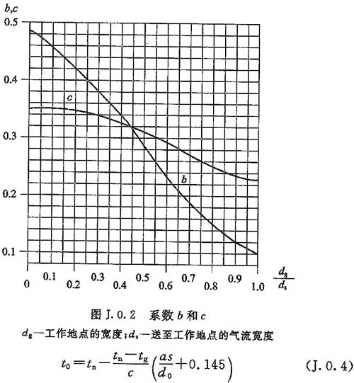 J.0.4 送風口的出口溫度應(yīng)按下式計算。當送冷風時,計算的送風口出口溫度較低時,可選用較大尺寸的送風口重新確定相關(guān)參數(shù)。